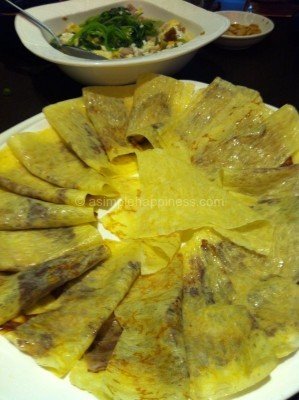 I am satisfied with most of the dishes. Dim sum like char siew pau, fun cheong etc. My favourite being the 炸两, which is fried you-tiao wrapped with fun cheong. I know the combi sounds weird, i thought the same too when i first heard it in HK, but you gotta try it. Its soft on the outside, crispy on the inside-Wow! I would like to highlight the mini egg tarts that comes in 3s per plate, they are my niece favourite and gets sold out very fast-grab them while you can. The pan-fried osmantus chestnut cake is worth a mention. The osmantus fragrant is not over-powering and it brings out the fragrant of the water chestnut with light frying. And the lau sha pau, one bite in it and the salted egg yoke fills up your mouth- shiok! Be careful, its hot. I also particularly like the fried carrot cake with XO sauce, not too oily and goes well with the bean sprouts. Peking duck is yummy-crispy skin wrapped with thin skin, goes well with the crunchy freshly cut cucumber slices. The peking duck meat is used to fried the ee fu noodles, so juicy you can’t resist! Congees and dry wanton style noodles are to the standards of smooth and crunchy(QQ) respectively. Fried tofu cubes with salt and pepper is nice too. They have a combo of the roasted delights of char siew, roast pork & duck.