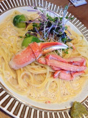 Kani (crab) claw [real 1] with yuzu pepper and spaghetti in wafu sauce… Super yummy … Slurp 🙂